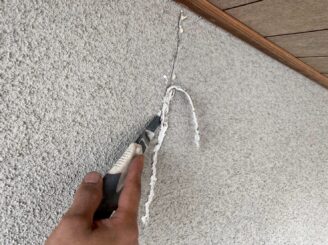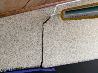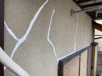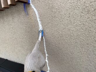 ひび割れ箇所を専用のコーキング剤を補填していきます