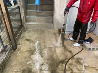 長年の汚れを洗浄作業でキレイにしていきます