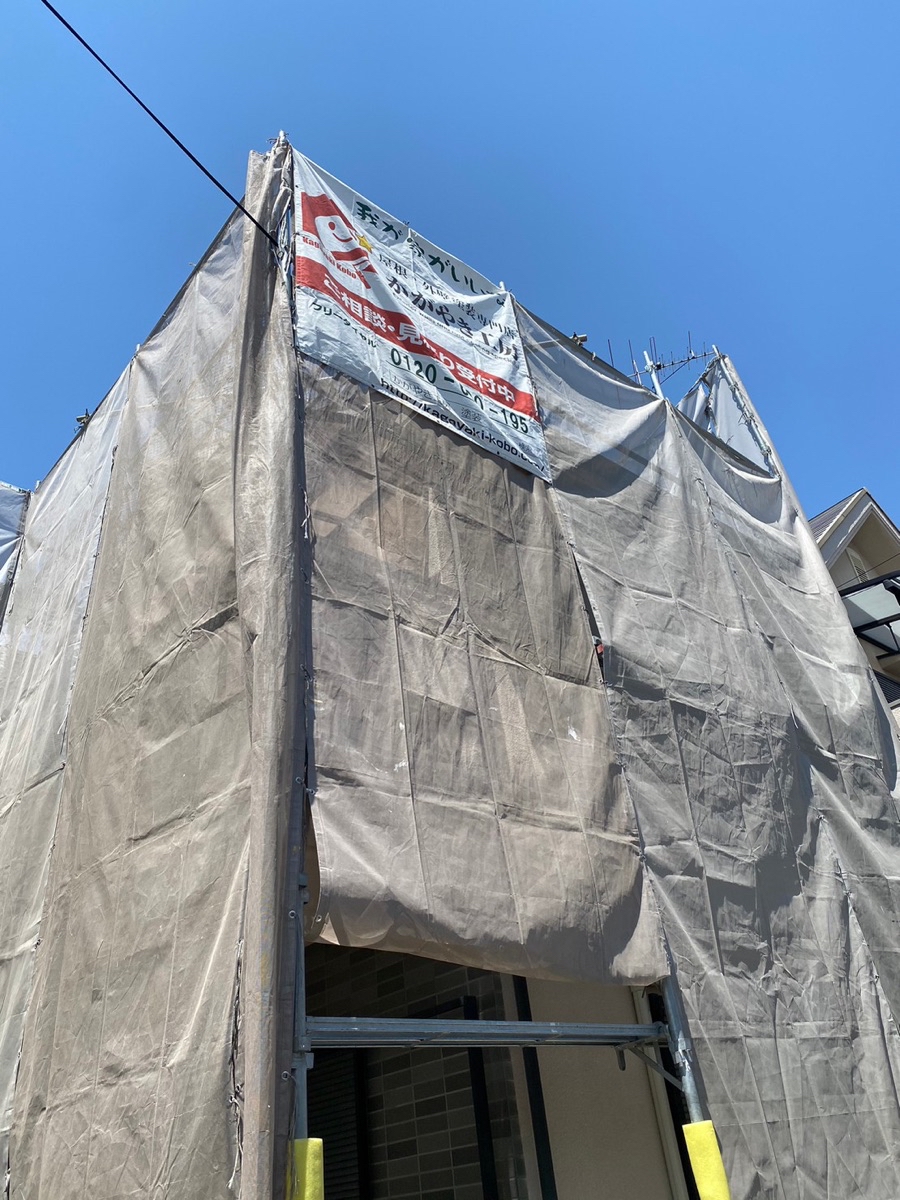 伊丹市荒牧にて外壁塗装工事が始まりました! 足場組立工事からスタート