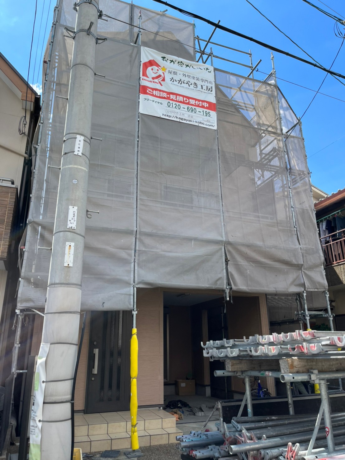 尼崎市上ノ島にて塗装工事が始まりました。